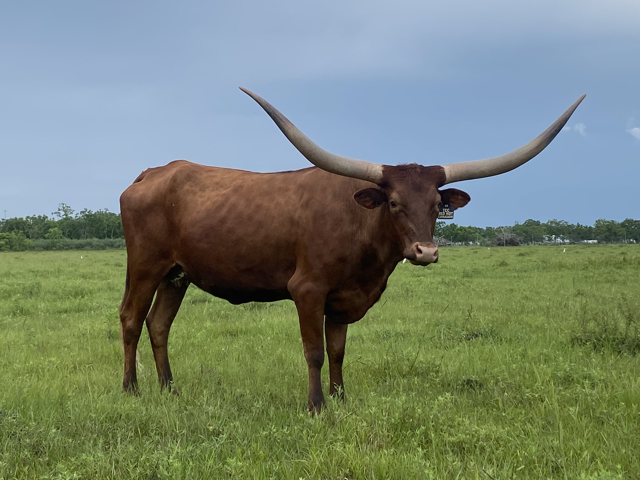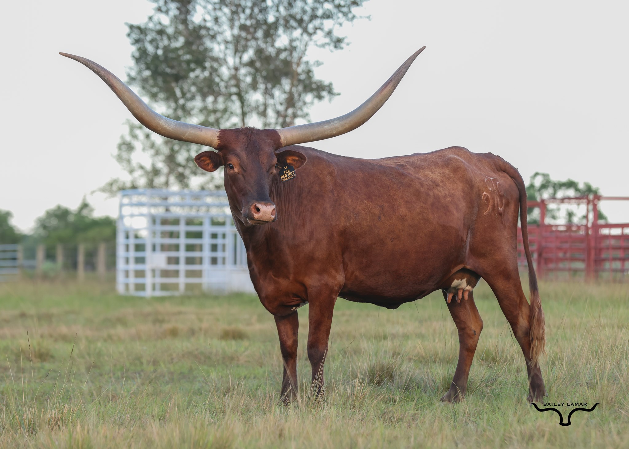 This dark cherry female has a ton of presence. She's another superb HH Samurai daughter out of SDR Fantoms Cinnamon, a half sister to 95" Fantom Ring BCB.